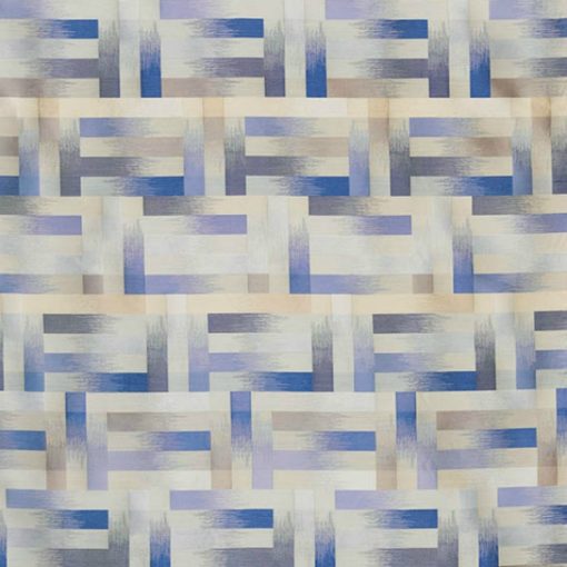 Οι αποχρώσεις του νερού και της γης ανακατεύονται τέλεια, απαλύνοντας το γεωμετρικό σχέδιο. Ύφασμα ιδανικό για κουρτίνα ή ρόμαν ή μαξιλάρια.